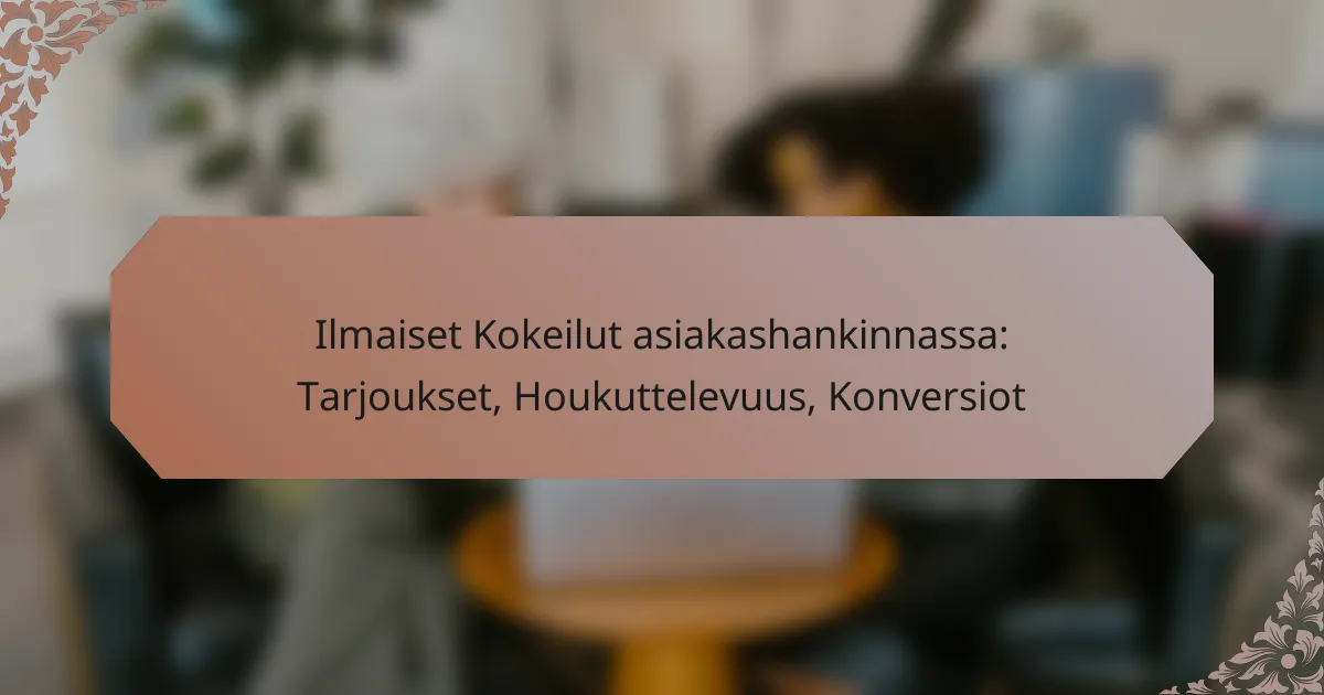 Ilmaiset kokeilut asiakashankinnassa ovat tehokas markkinointistrategia, jossa yritykset tarjoavat asiakkailleen mahdollisuuden testata tuotteitaan tai palveluitaan …