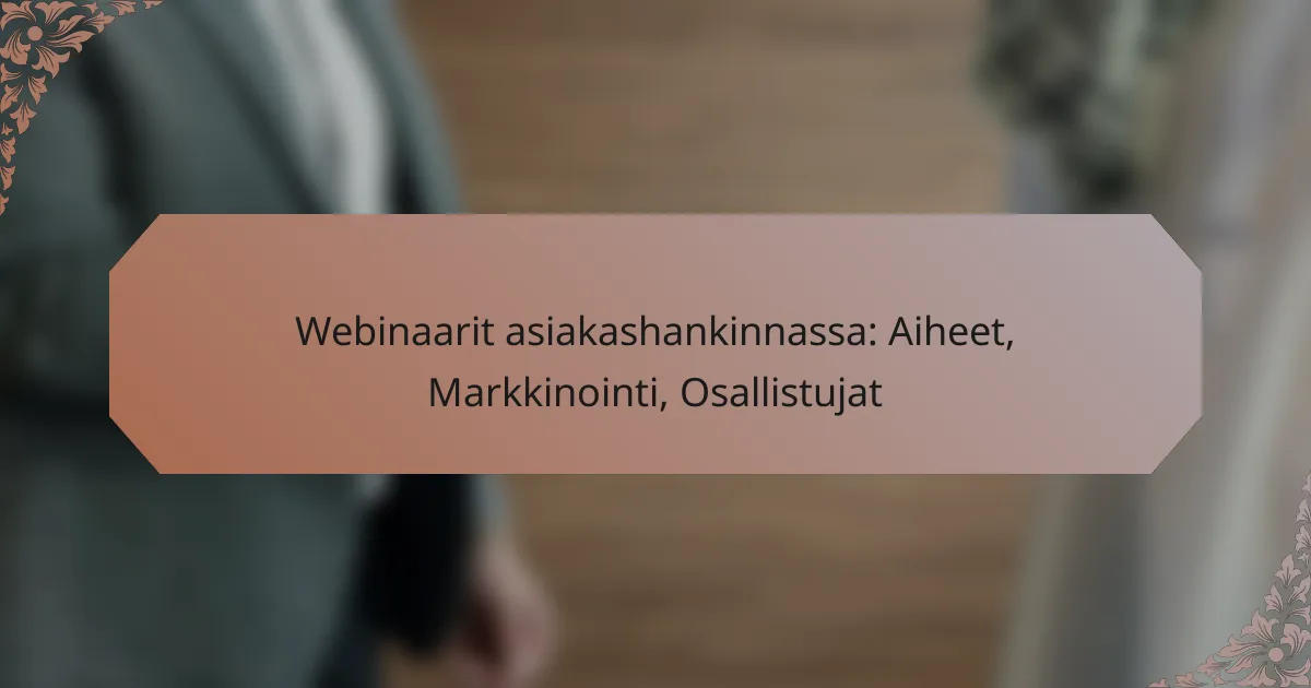 Webinaarit ovat tehokas työkalu asiakashankinnan tukemisessa, sillä ne mahdollistavat suoran vuorovaikutuksen potentiaalisten asiakkaiden kanssa. Tehokkaat …