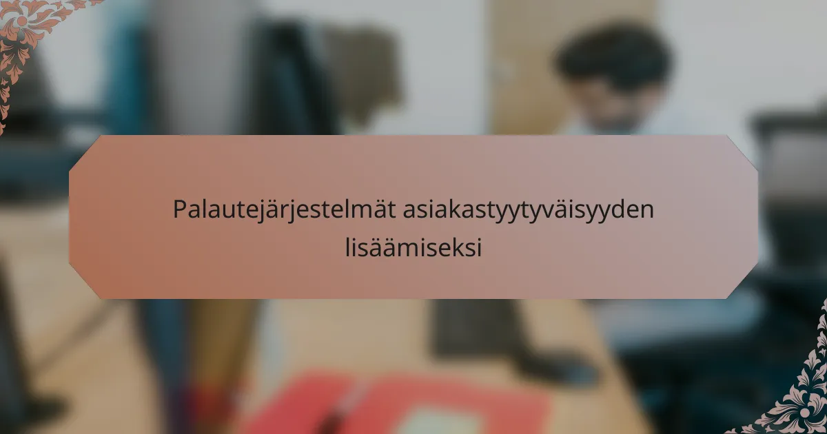 Palautejärjestelmät ovat keskeisiä työkaluja asiakastyytyväisyyden parantamiseksi, sillä ne mahdollistavat asiakkaiden palautteen keräämisen ja analysoinnin. Oikean järjestelmän valinta on tärkeä askel, ja sen tulisi vastata yrityksen tarpeita sekä asiakasryhmän erityispiirteitä. Tehokkaat käytännöt keskittyvät käyttäjäystävällisyyteen ja palautteen hyödyntämiseen asiakaskokemuksen kehittämisessä.